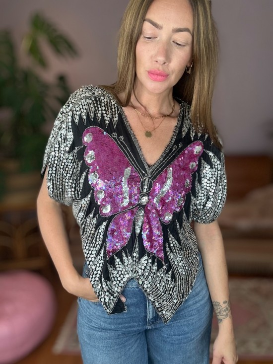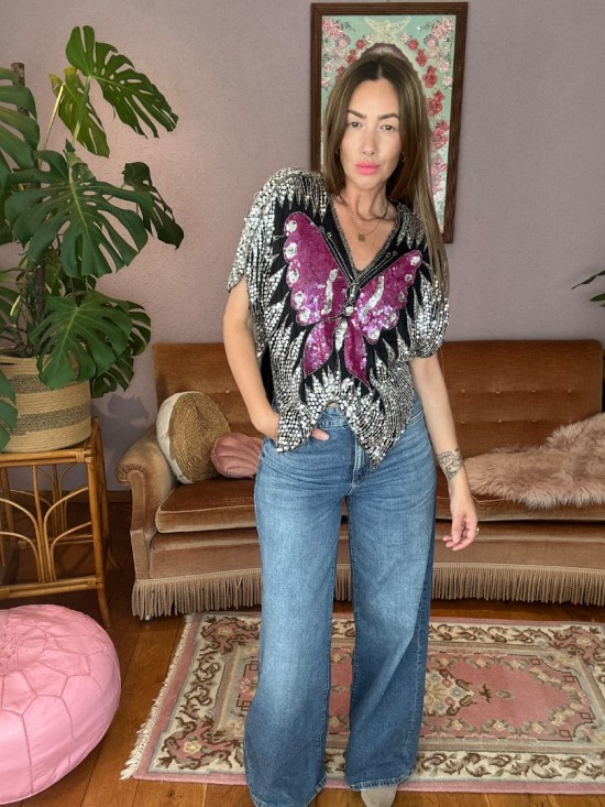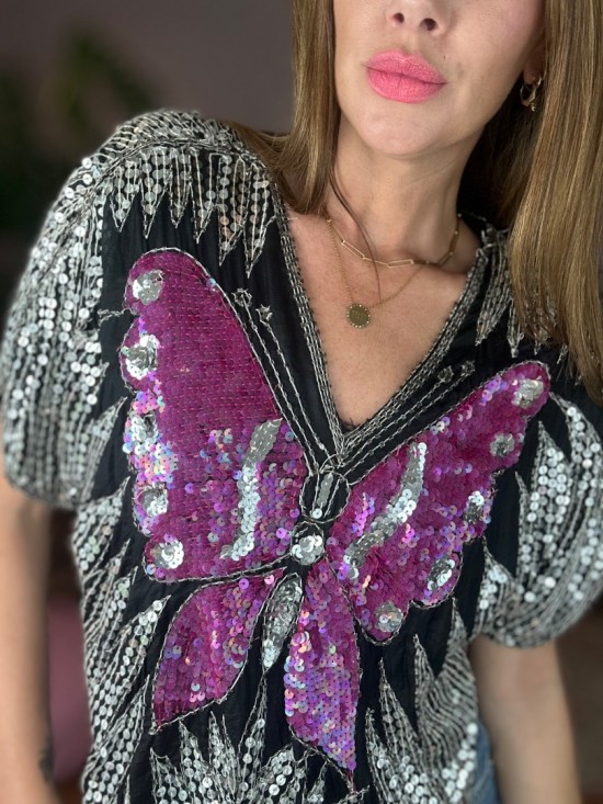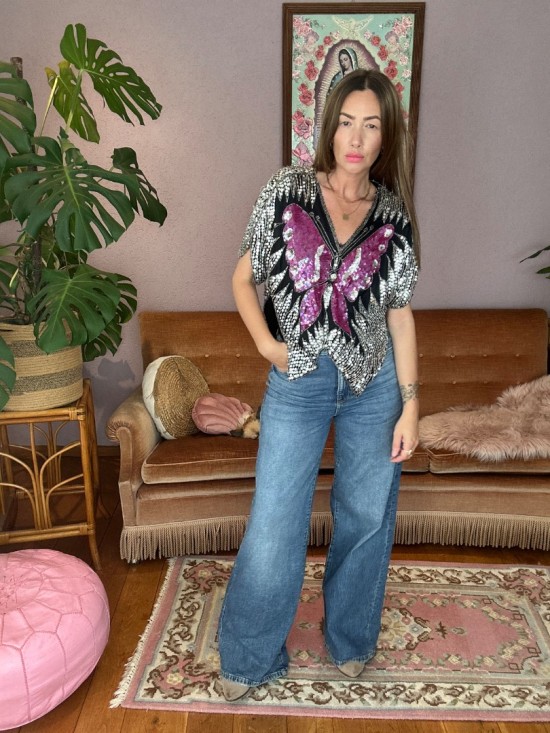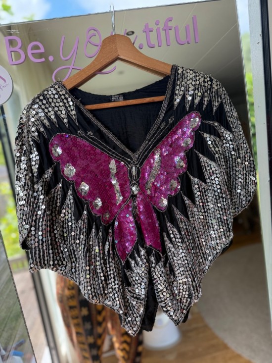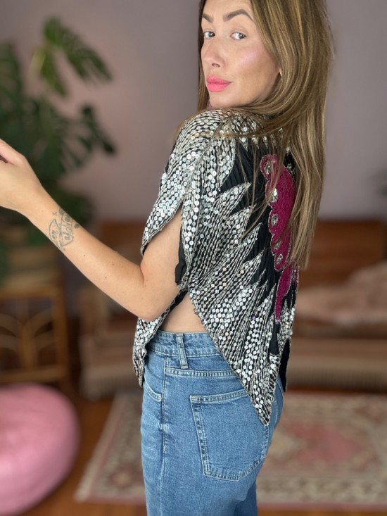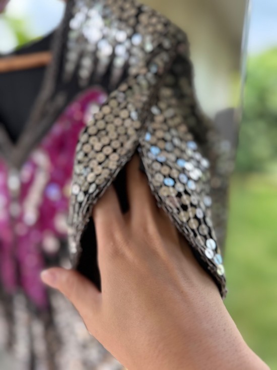 Handmade from India, loose threads & sequins are missing. Included in price.