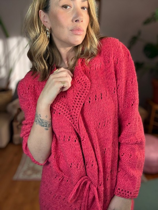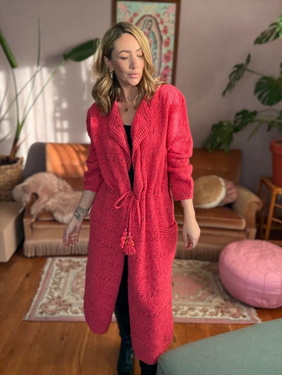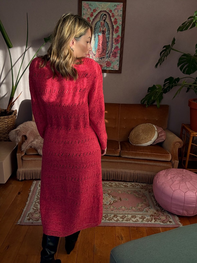 Hot Pink Woollen Maxi Vest / Duster / Dress