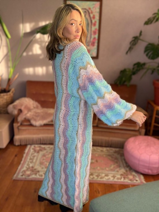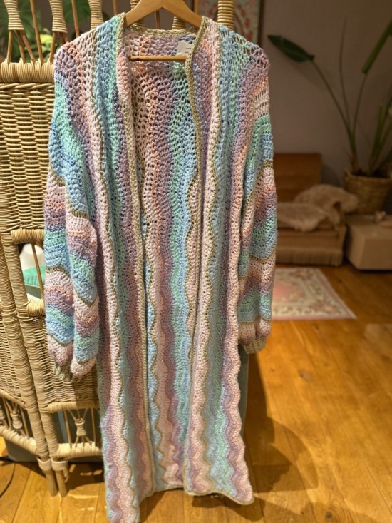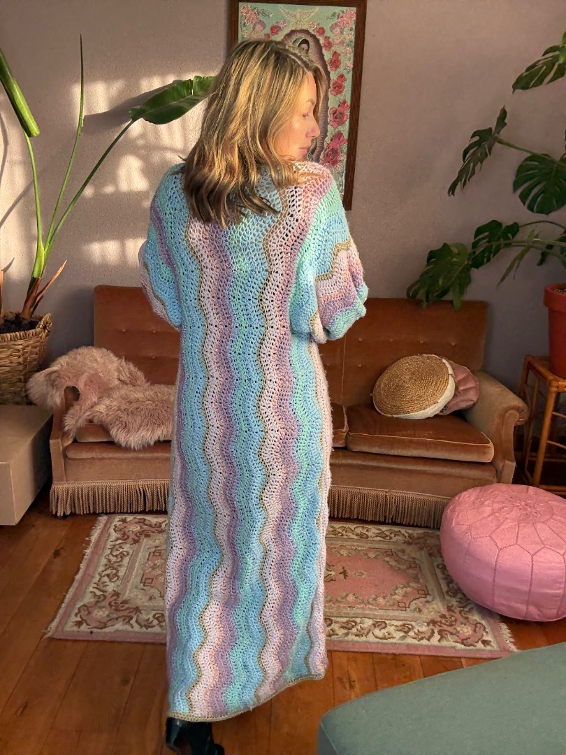 Pastel Gold Glitter Maxi Handmade Crochet Vest
