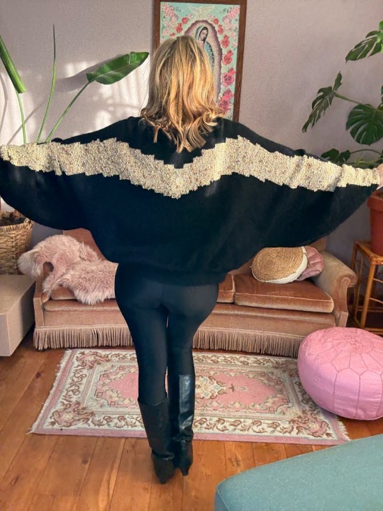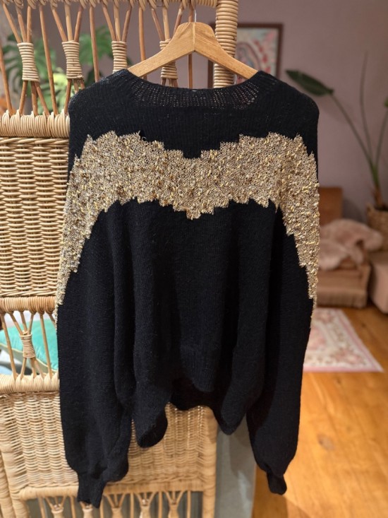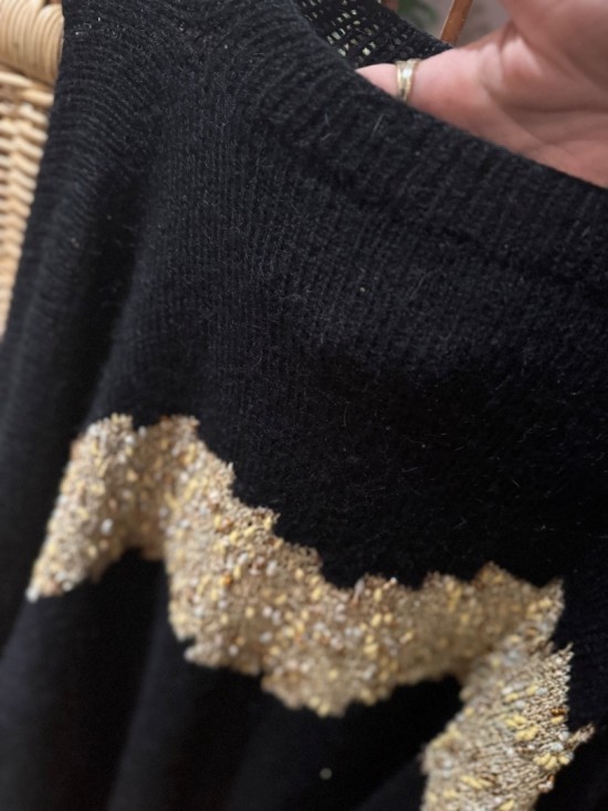 Black Gold Glitter Puffy Sleeve Cropped Knit