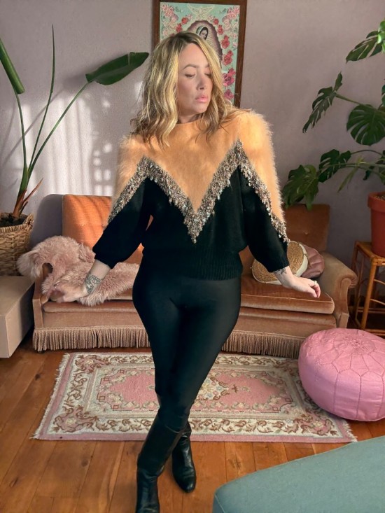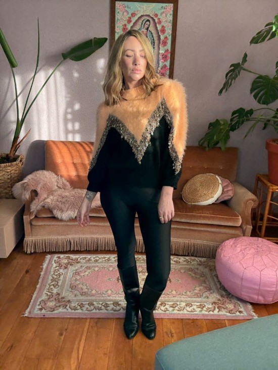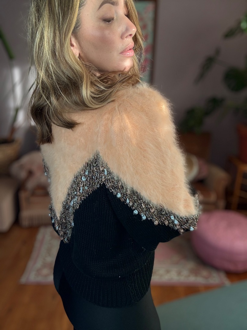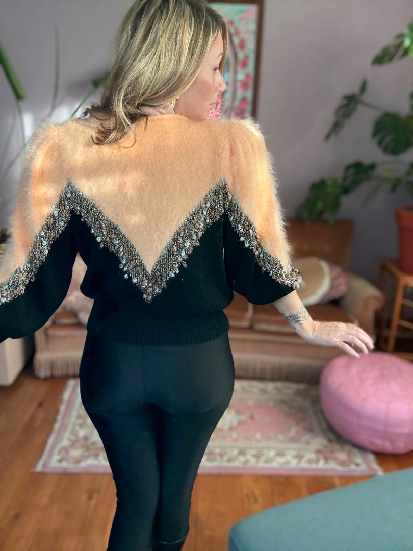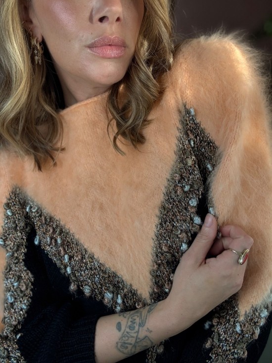 Peach Mohair Black Knit