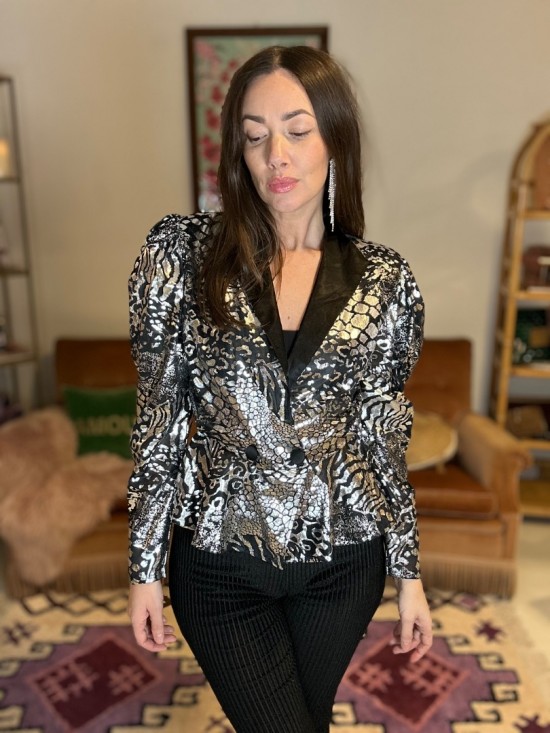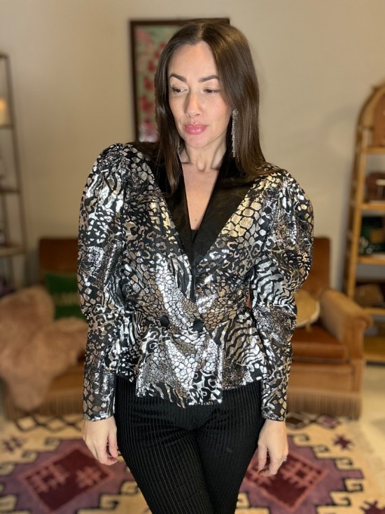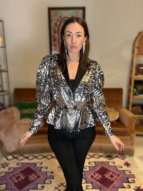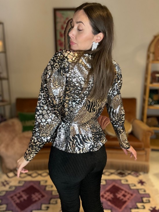 '80s Black Silver Blouse