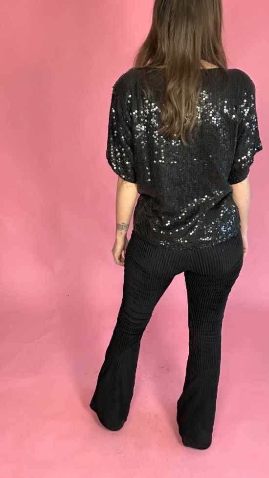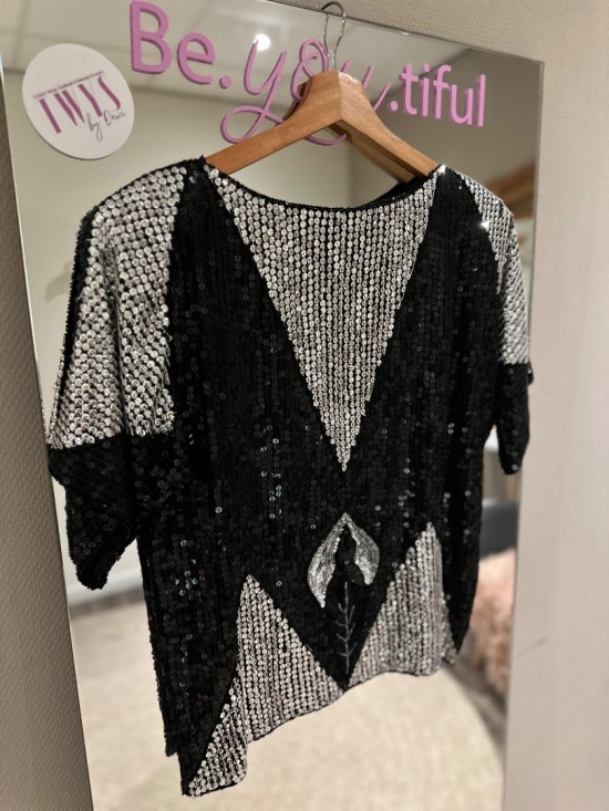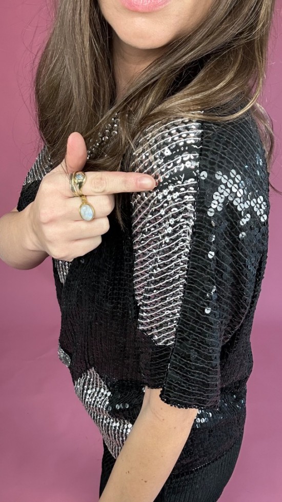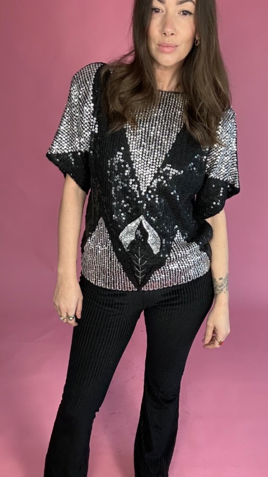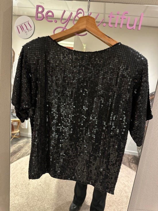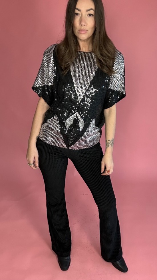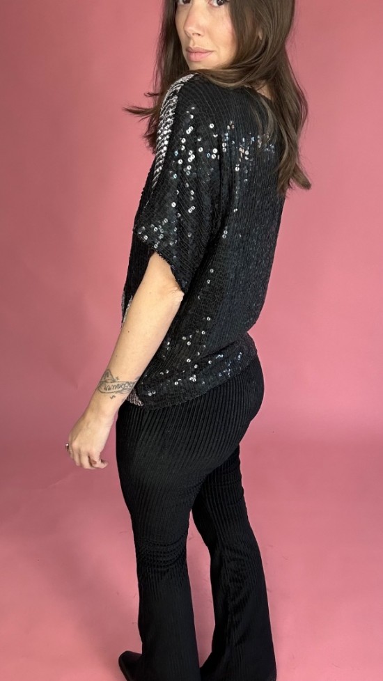 Black Silver Sequin Top