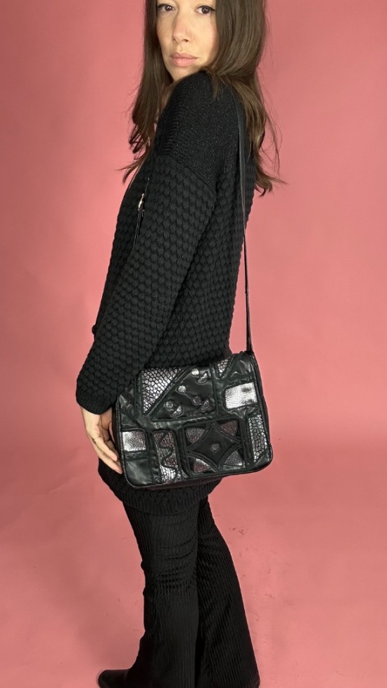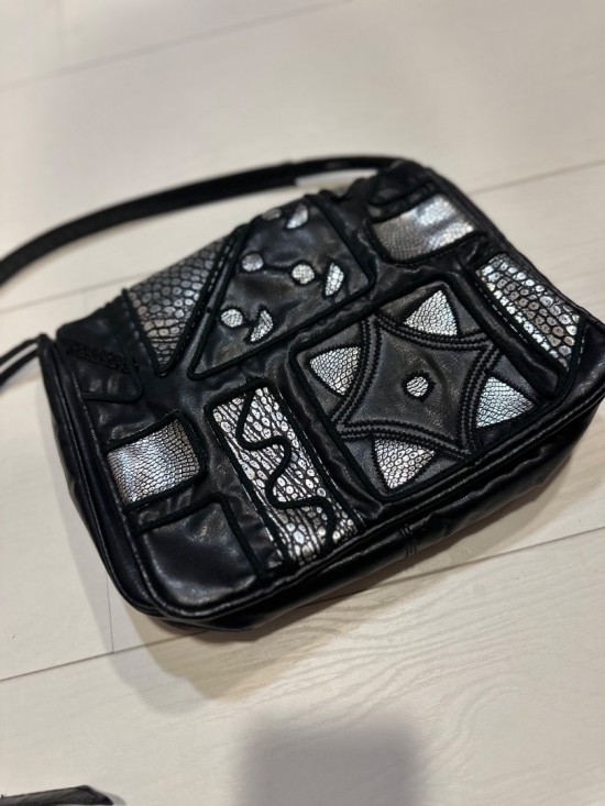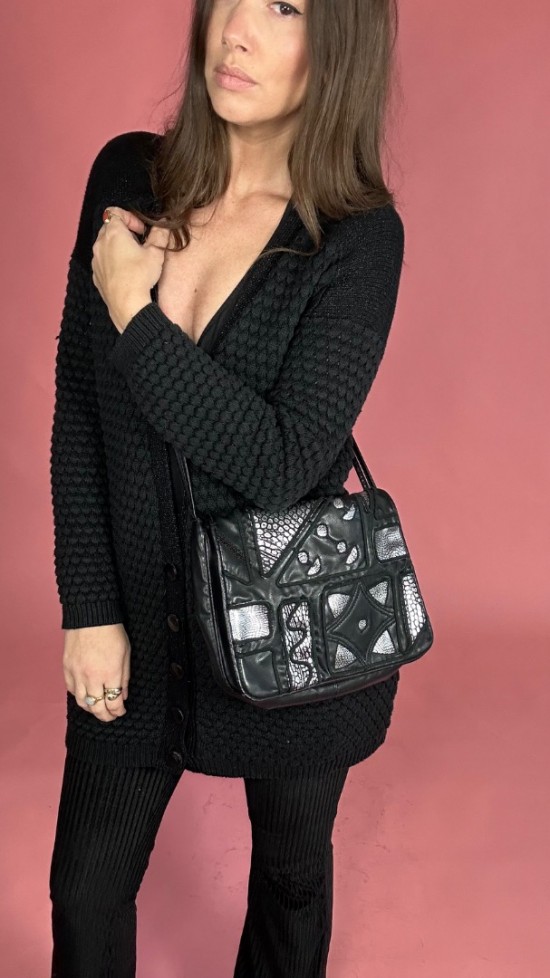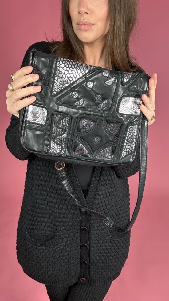 Black Silver Leather Look Bag