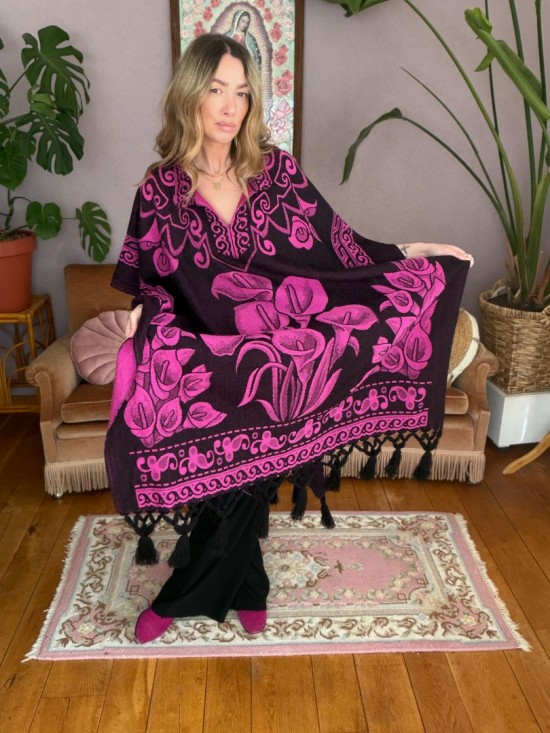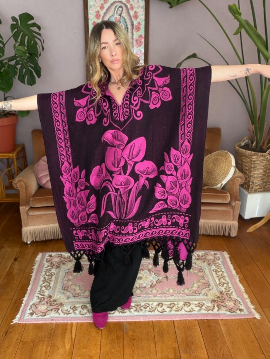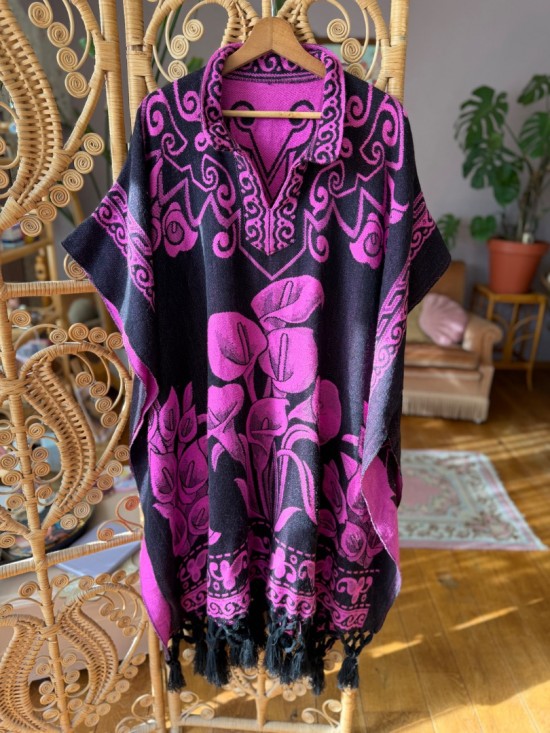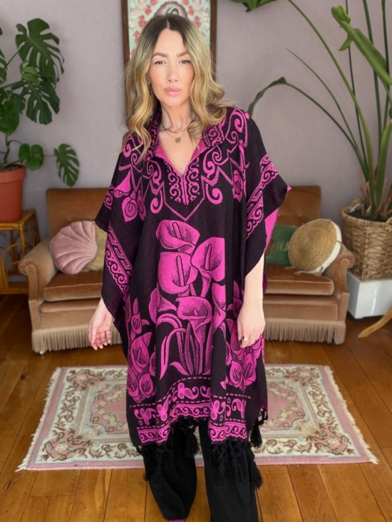 Fuchsia Black "Lily" Poncho