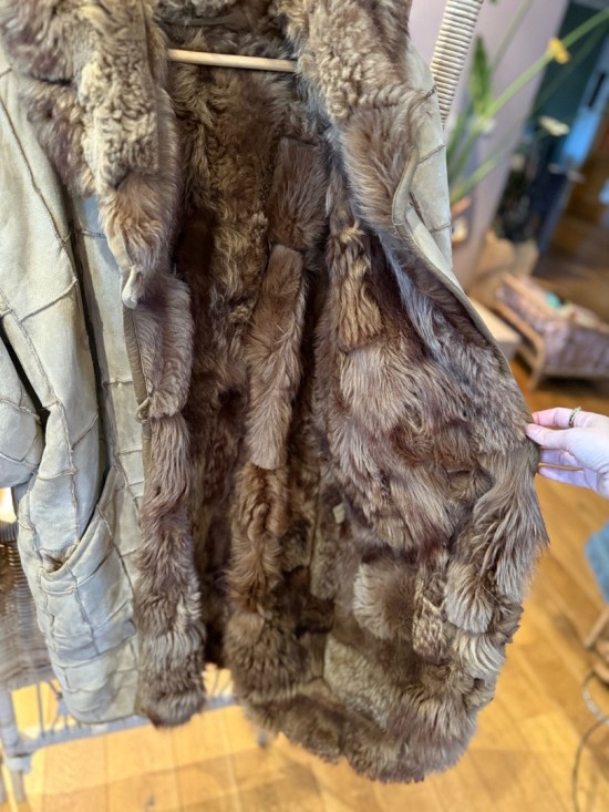 *the suede leather is very fragile! It's teared at some places and stitched by hand. And there are soms stains on the back (included in price)