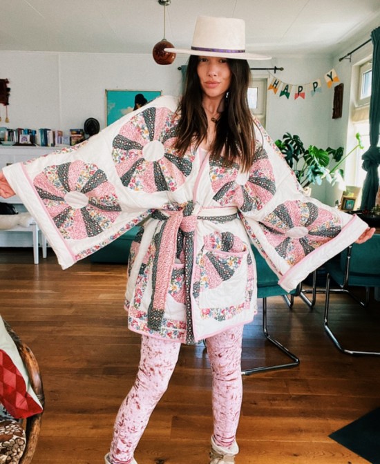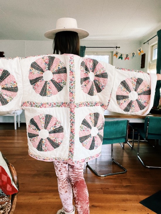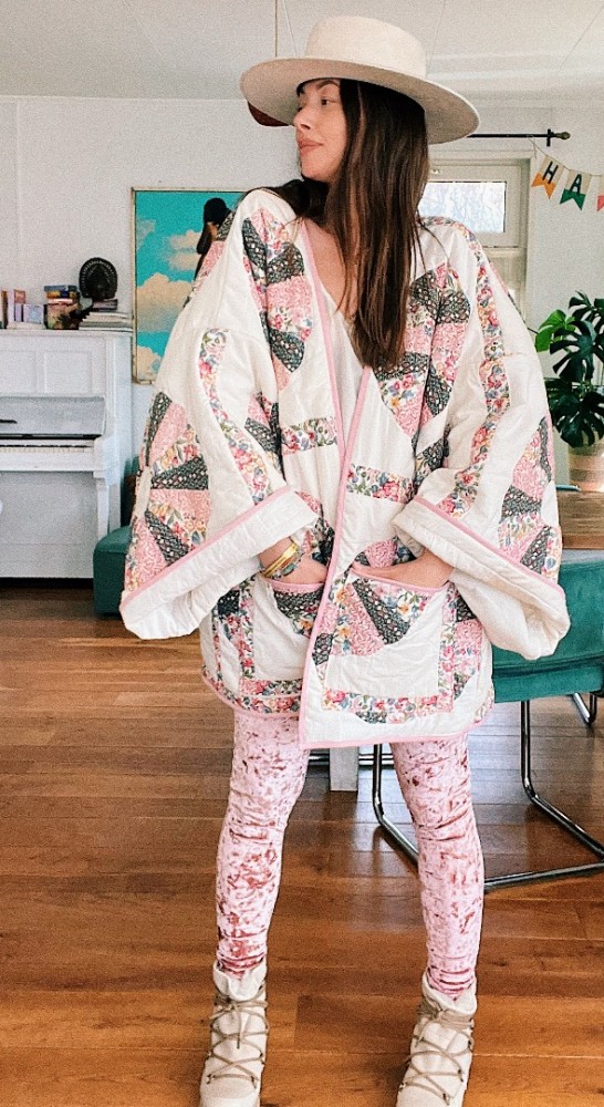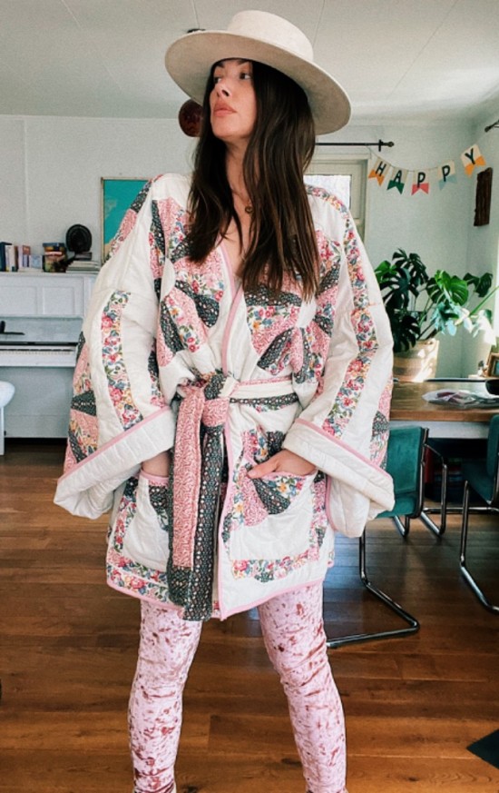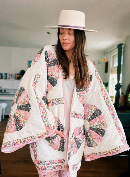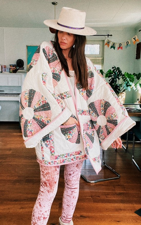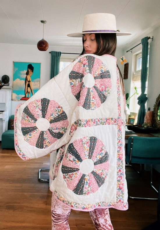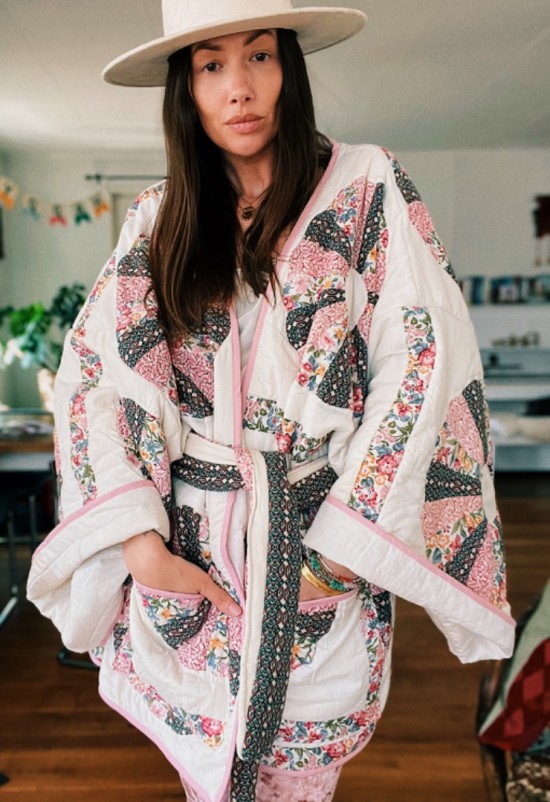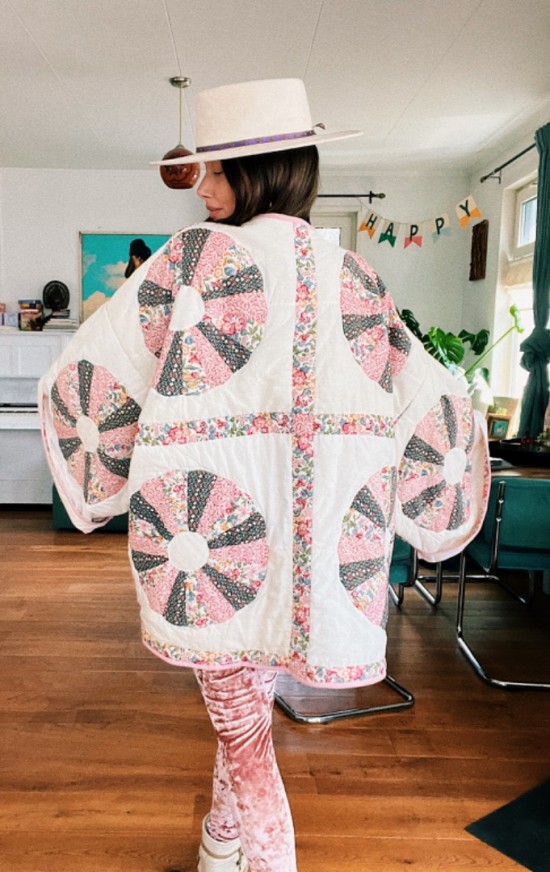 "Round & Round" Vintage Patchwork Quilt Kimono Jacket
