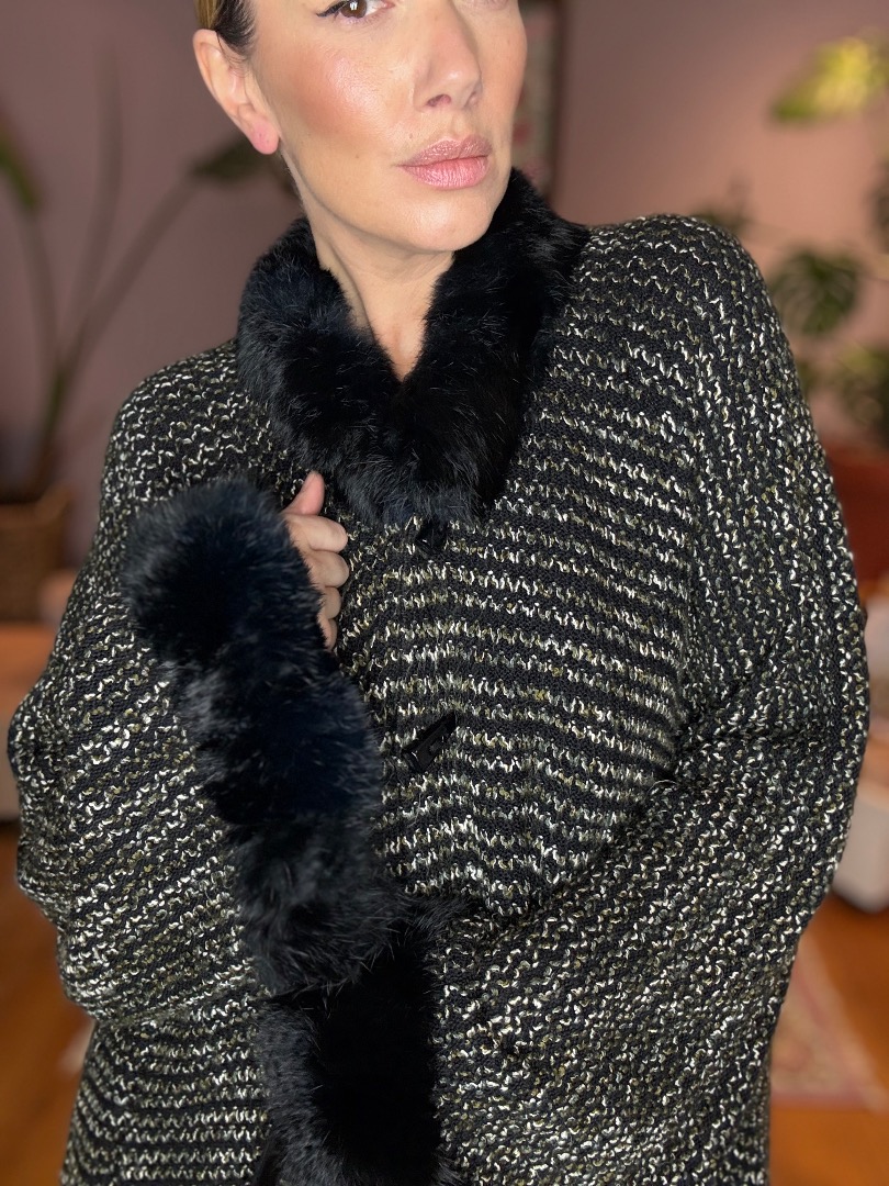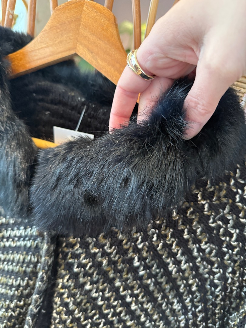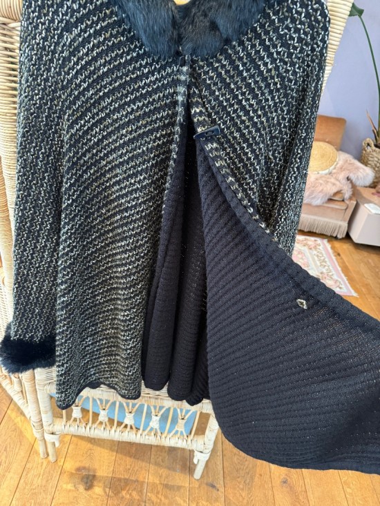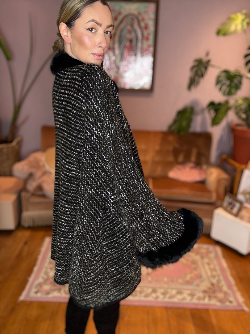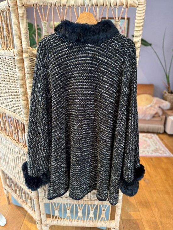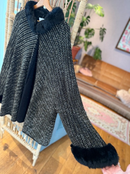Black/Grey Woollen (Fur) Poncho Cape Coat