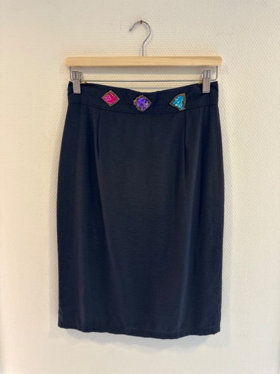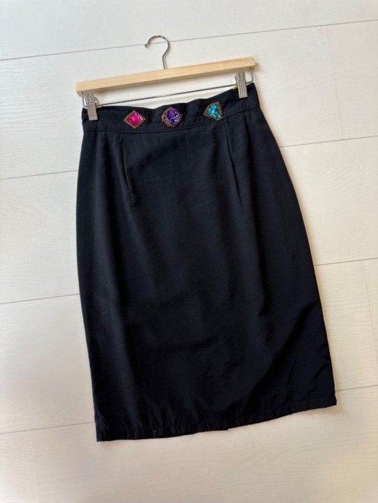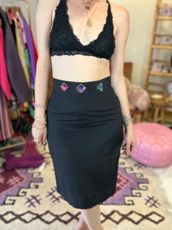 Black Shiny Pink/Purple/Green/Gold Sequin Pencil '90s Skirt